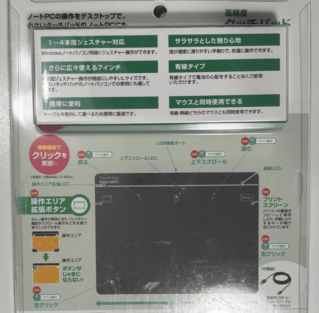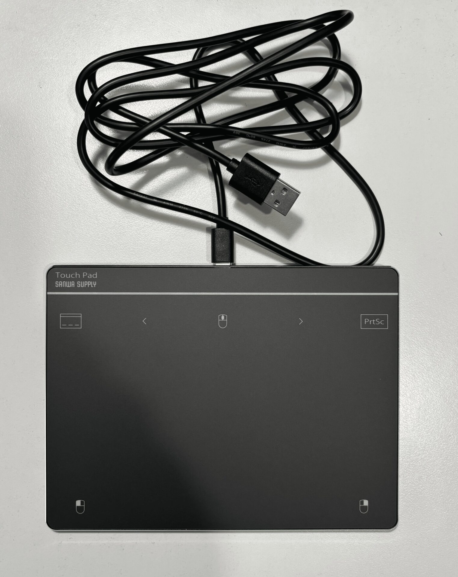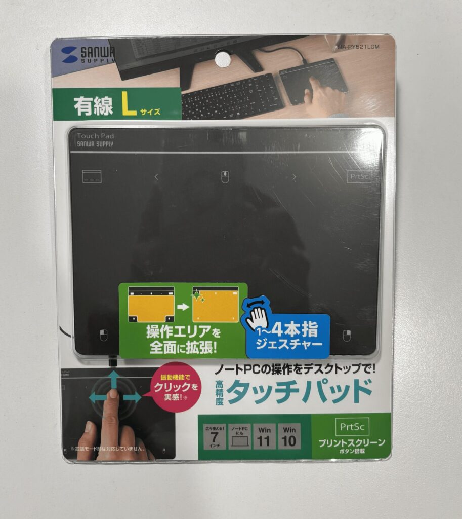 ってことで操作スタイルがガラッと違う「トラックパッド」を購入。過去の経験上一番のベスト機は、Appleの「Magic Trackpad」だ。しかし、私のパソコンはWindowsなので使えない(怪しいドライバ入れて使うこともできるが)ので、サンワサプライのトラックパッド「USBタッチパッド 有線 トラックパッド 14ジェスチャー USB-A 7インチ