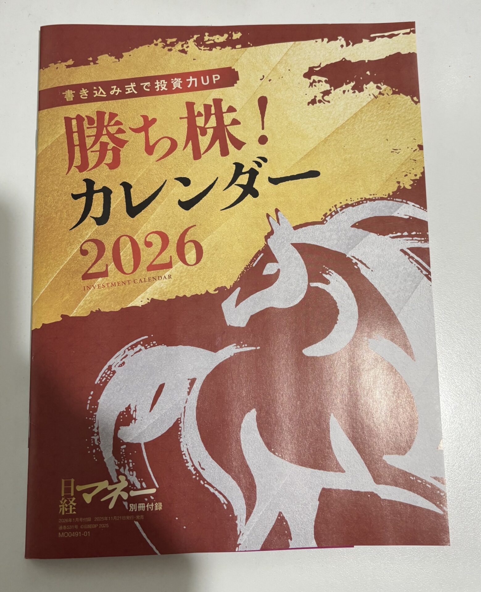 今年も気づけば年末。私は原則、電子書籍派。紙媒体(雑誌)を全く買わないのに、「日経マネーの1月号」だけは毎年例外で、今年もやっぱり買ってしまいました。理由はもちろん、付録の 「勝ち株カレンダー」。今年もこれ目当てです。雑誌自体は読んでないので、カレンダー単体で売って欲しいです(オイ)